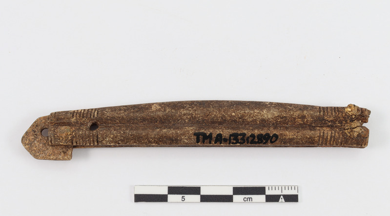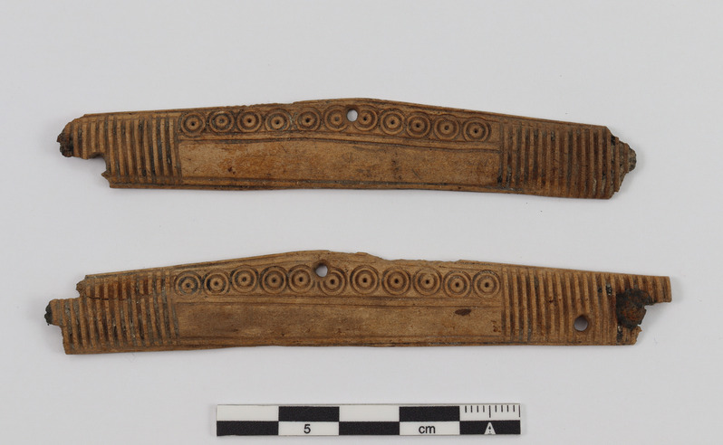 Viimatinimetatu ese on kaunistatud lisaks püstjoontele silmakestest koosneva ornamendiga, sarnaseid kaunistusmotiive leidub ka Tartust teada olevatel luukammidel.